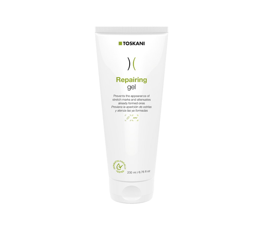 TOSKANI Repairing Gel is een herstellende bodygel met regeneratorische en verstevigende werkstoffen, bedoeld om huidstructuur te verbeteren, littekens en striae te verminderen, en de huid gladder en veerkrachtiger te maken.